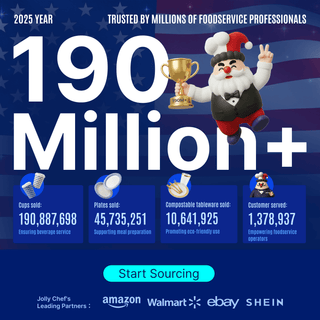 Whether you're going for elegant gold-rimmed plates or eco-conscious compostables, we’ve got you covered with bulk, reliable, and beautiful options shipped straight from our US-based warehouse. Make your moments memorable, mess-free, and joyful — the Jolly Chef way.