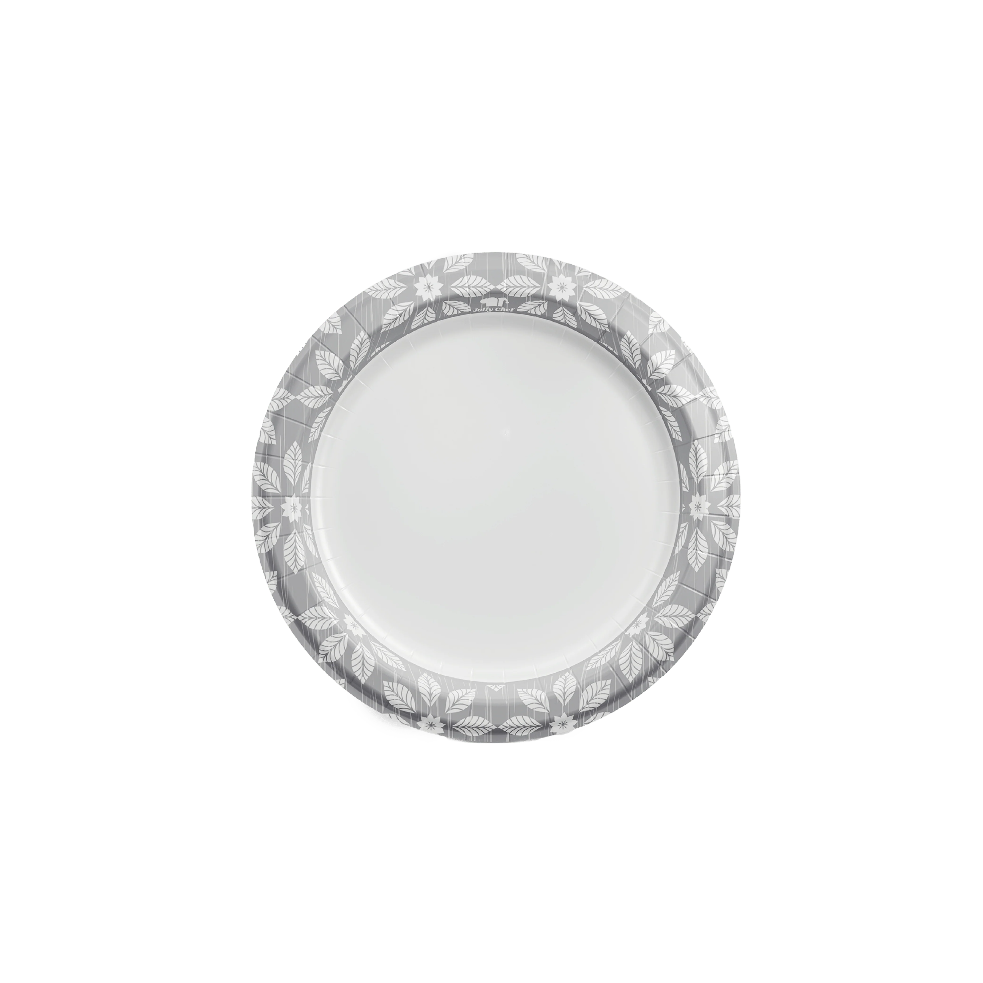 Durable Grey Leaf Pattern Paper Plates for BBQs and Parties