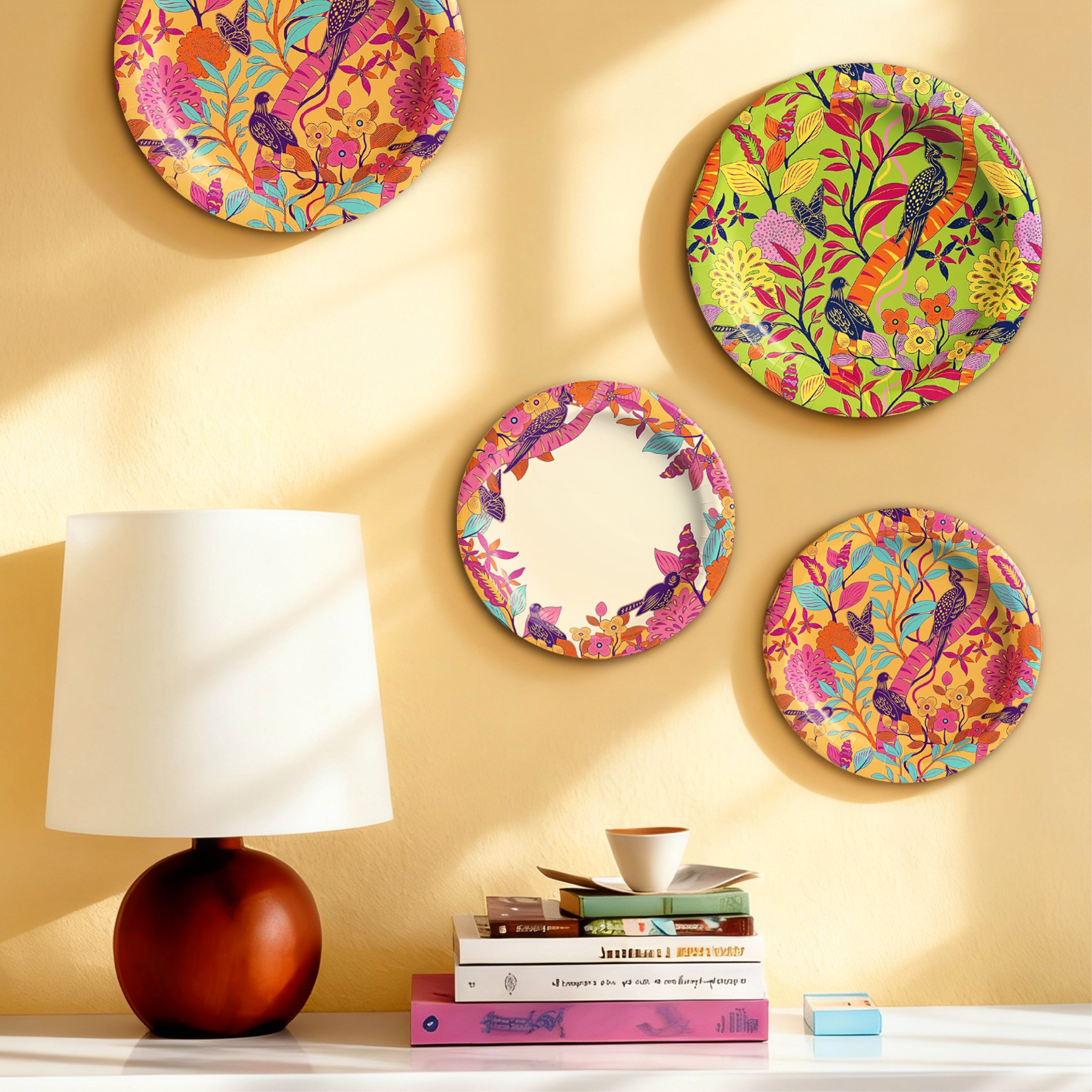 8.5/10 Inch Floral Bird Pattern (Set of 4 Designs) Vintage Paper Plates - Festival Use & Parties - MUCHII
