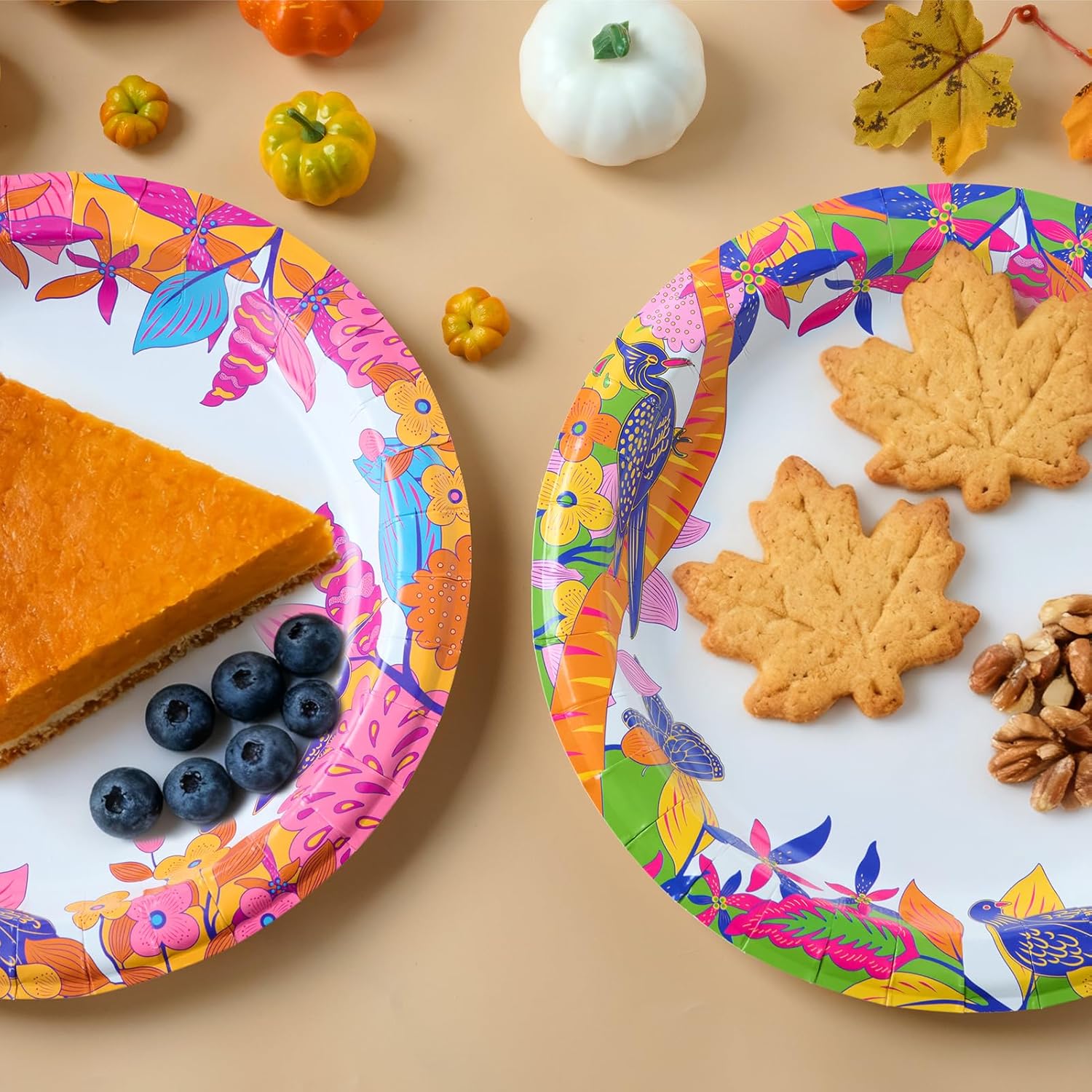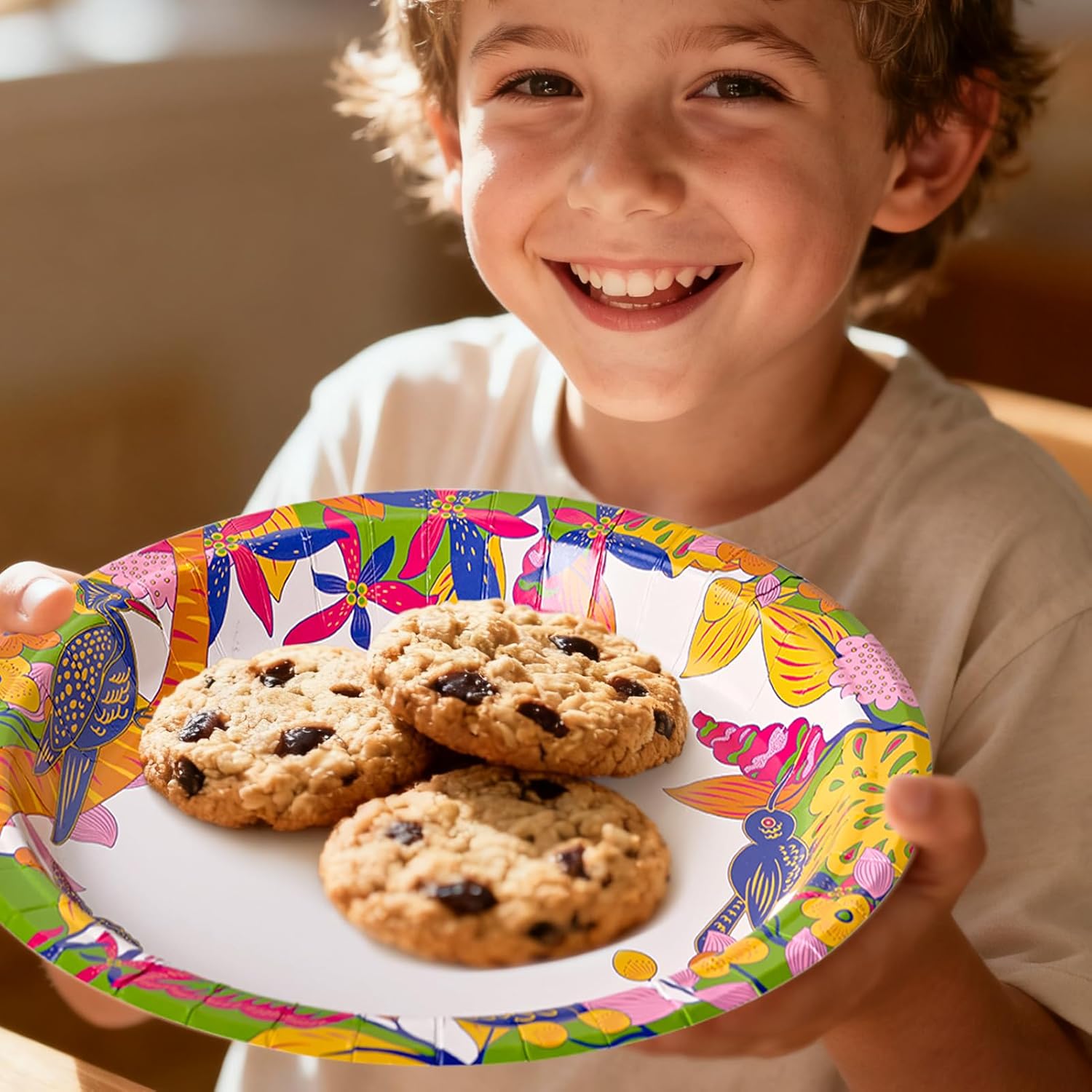 These 10 inch paper plates to bring elegance, charm, and convenience to any celebration. Featuring four unique vintage floral bird patterns, each plate showcases delicate artwork of blooming flowers and graceful birds—perfect for elevating your table setting. This set includes paper plates in bulk with 120 total pieces (30 of each design), giving you plenty of beautifully coordinated party supplies for gatherings of any size. Made from thickened, durable paper, these fancy paper plates can hold main courses, salads, pizza, desserts, and more without bending or getting soggy.