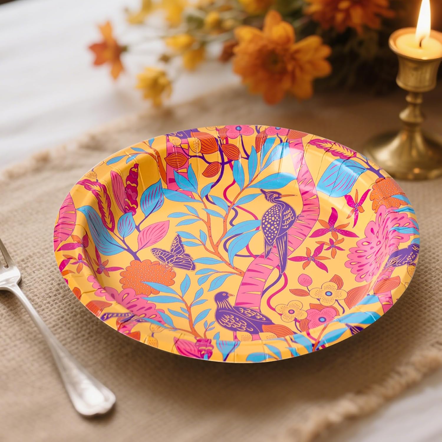 10in Vintage Floral Bird Design Disposable Paper Plates – Party & Wedding – MUCHII