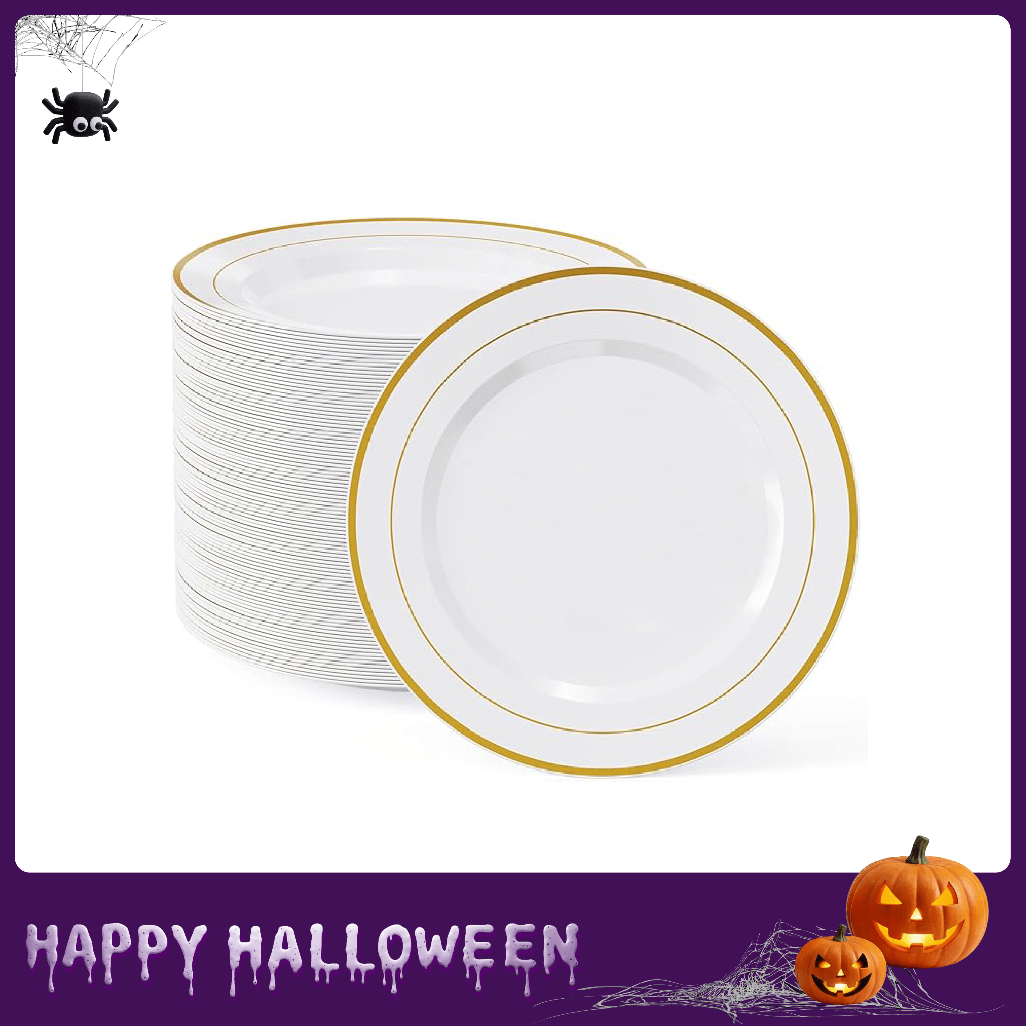 - Heavy Duty: These gold rimmed plastic plates are strong enough to hold large portions without bending, ensuring a reliable dining experience.
