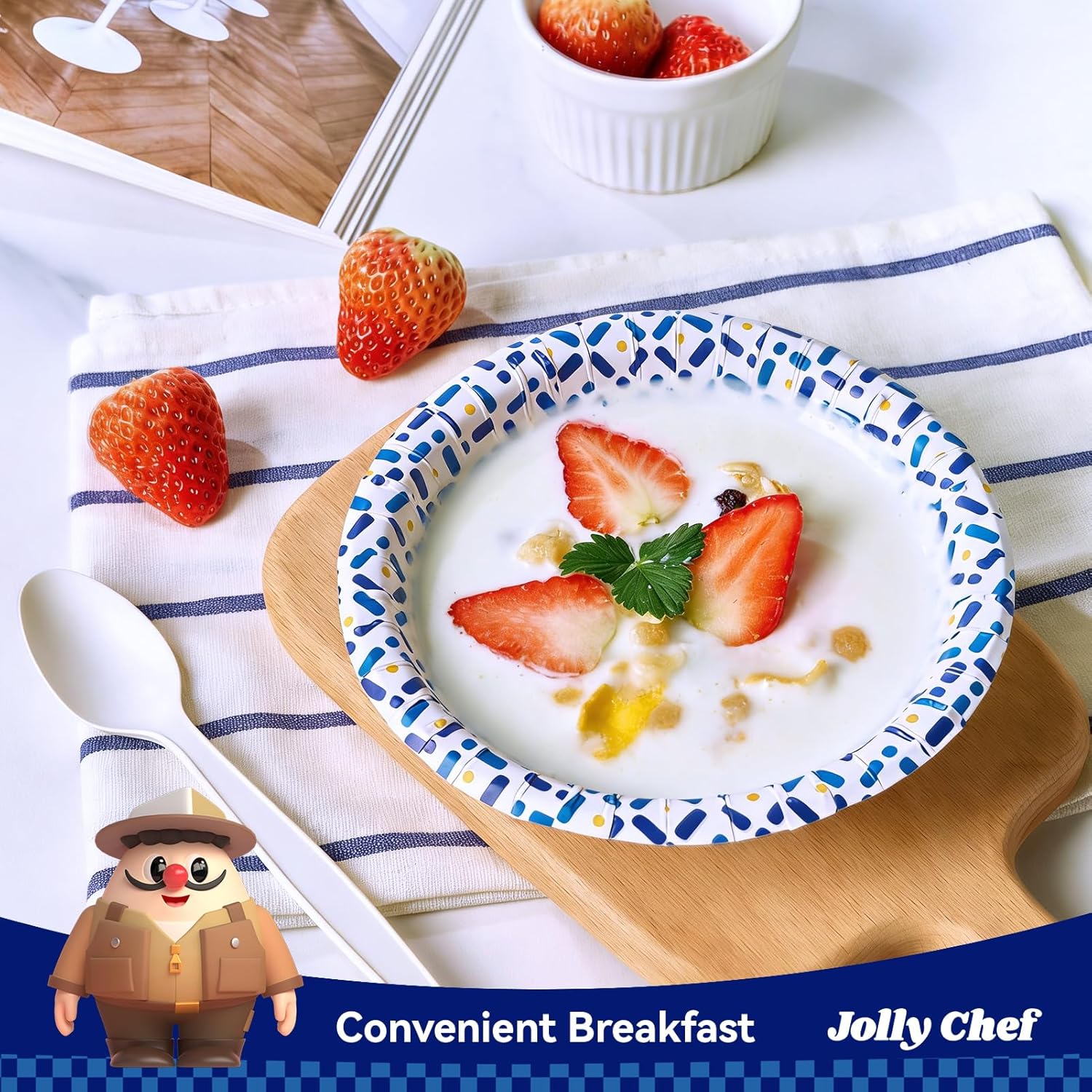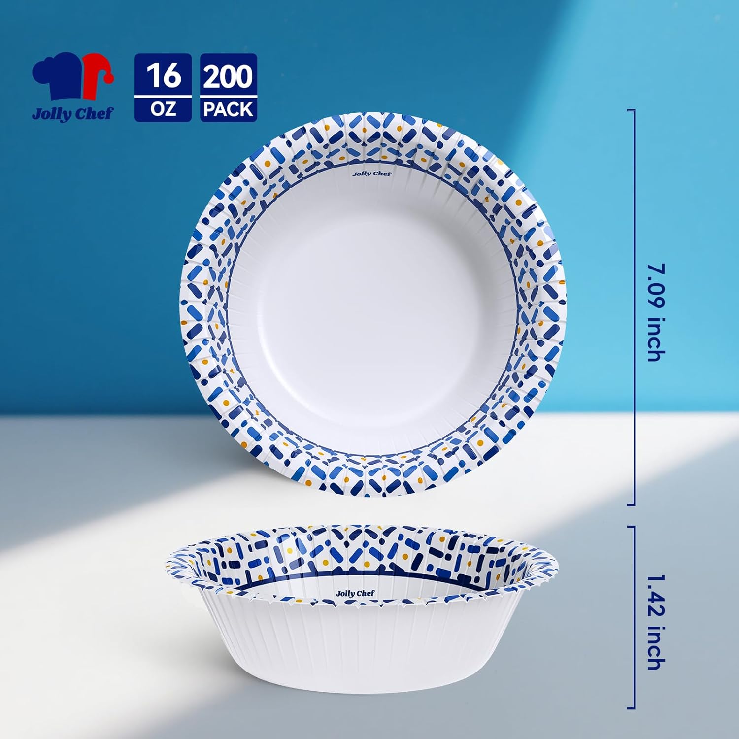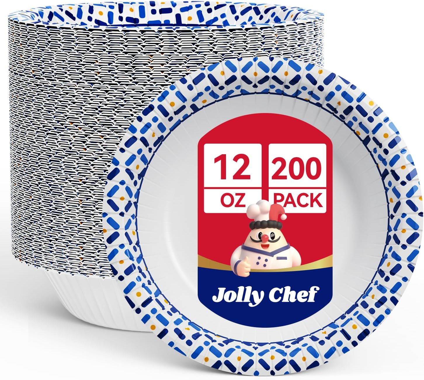 - Elegant Patterned Design: The white finish with a blue patterned rim elevates presentation for catering, events and dine-in displays.