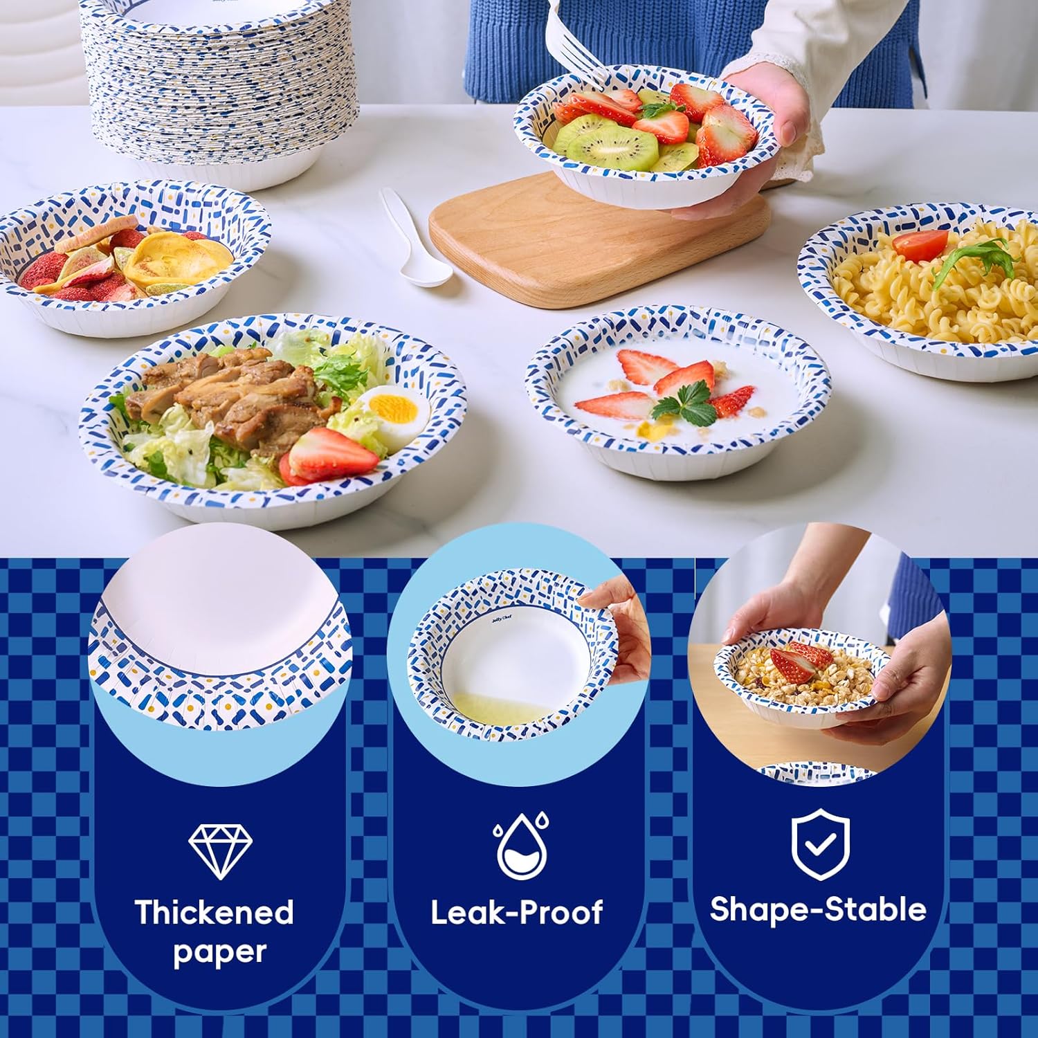 - Soak-Proof & Leak-Resistant: Reinforced, thick construction with grease-resistant and cut-resistant properties prevents bending and leakage when serving steaks, pasta and salads.