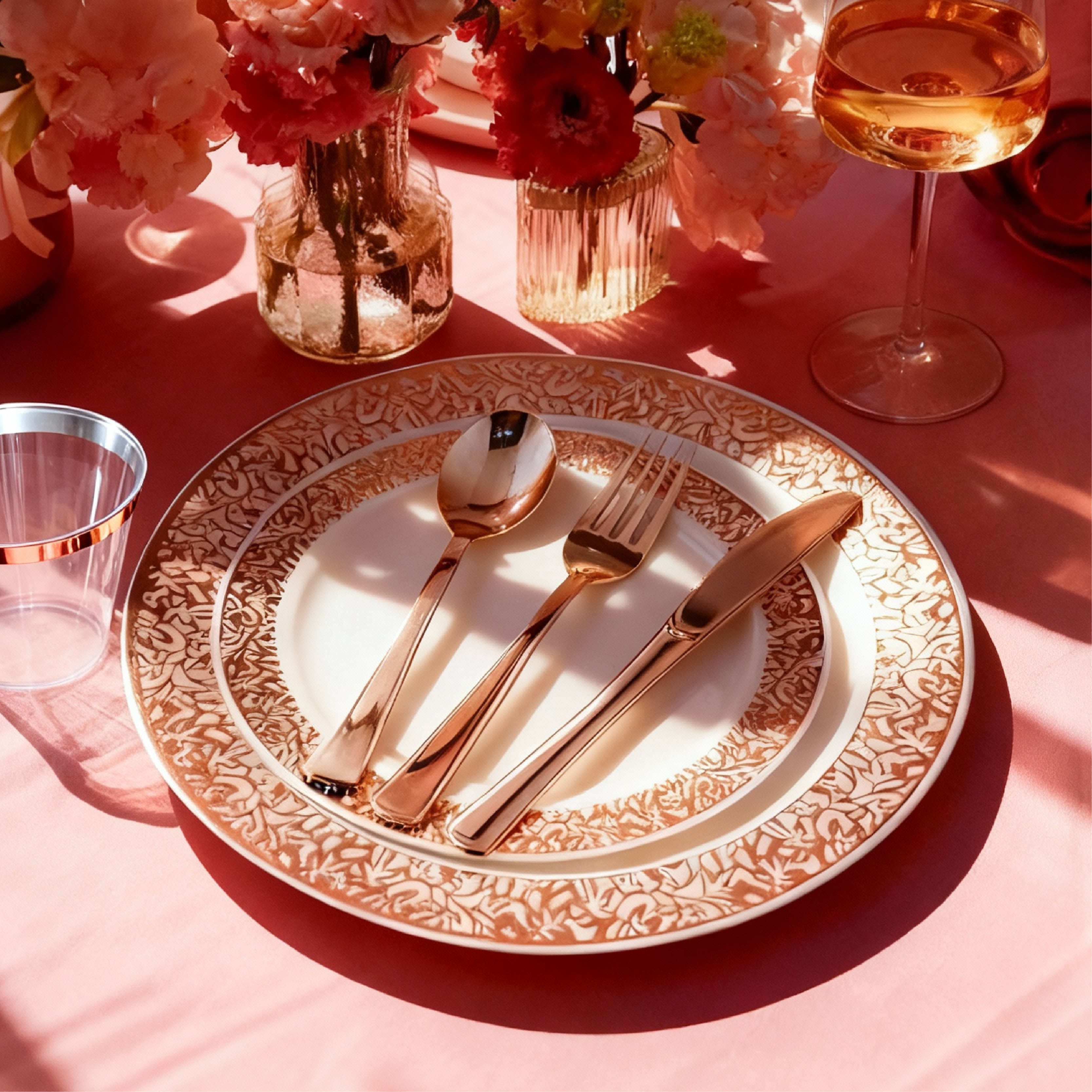 Rose Gold & Gold Round Plastic Dinnerware Set for Party & Dinner Events - Jolly ChefBy: Jolly ChefRegular price from $33.22 22% off