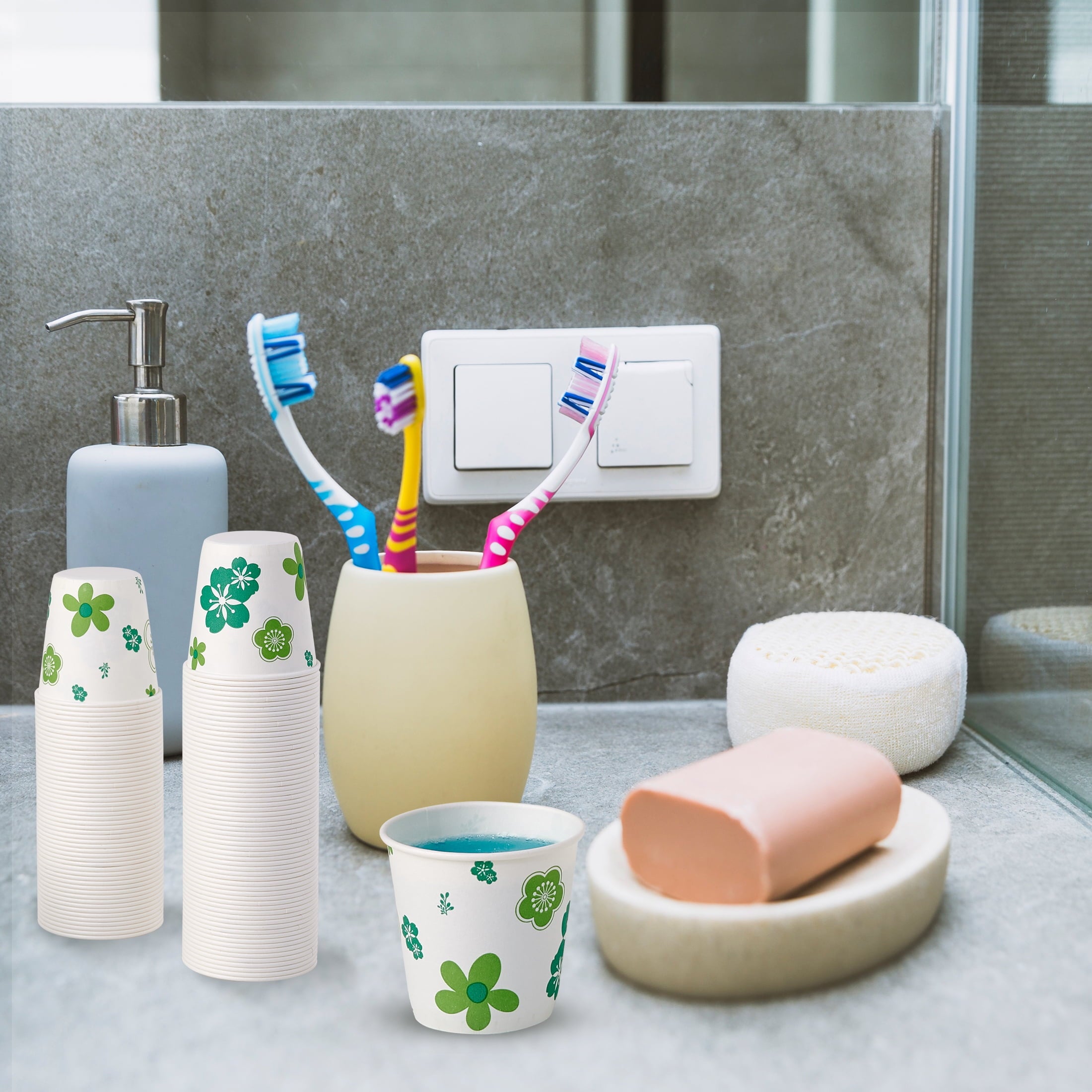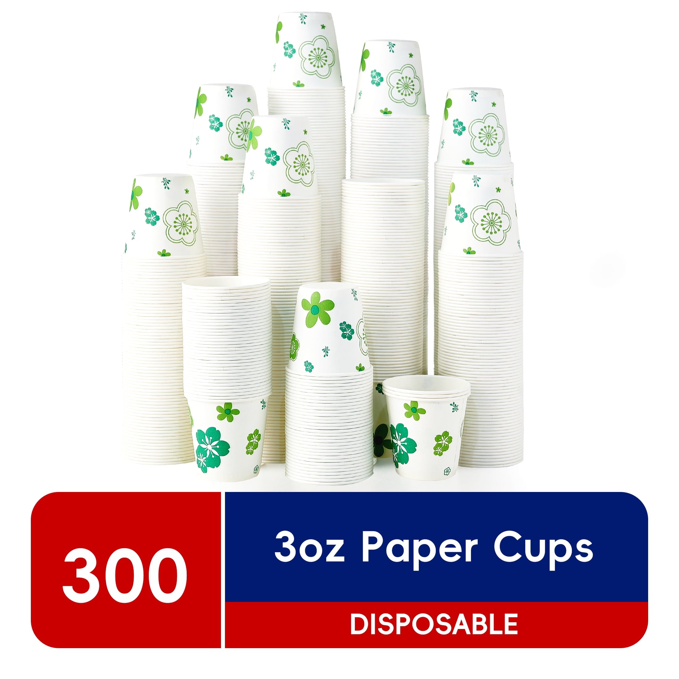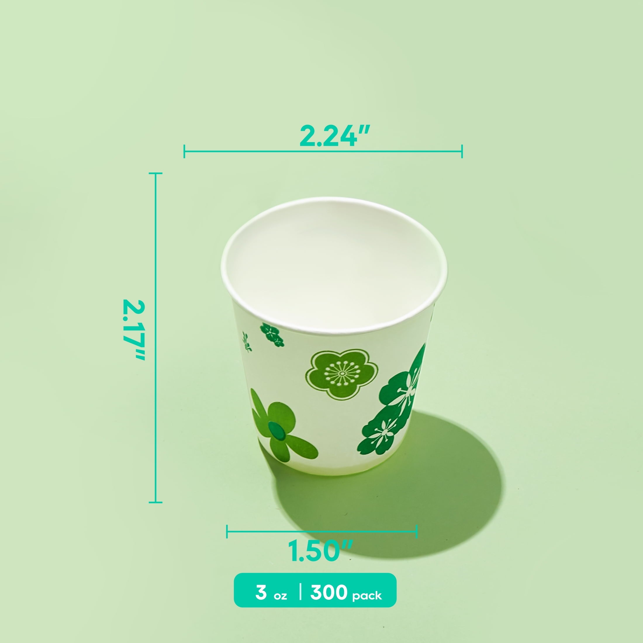 JOLLY CHEF [300 Pack] Paper Cups, 3oz Disposable Bathroom Cups, Mouthwash Cups, Cold Disposable Drinking Cup for Party, Picnic, BBQ, Travel, and Event, Green Floral