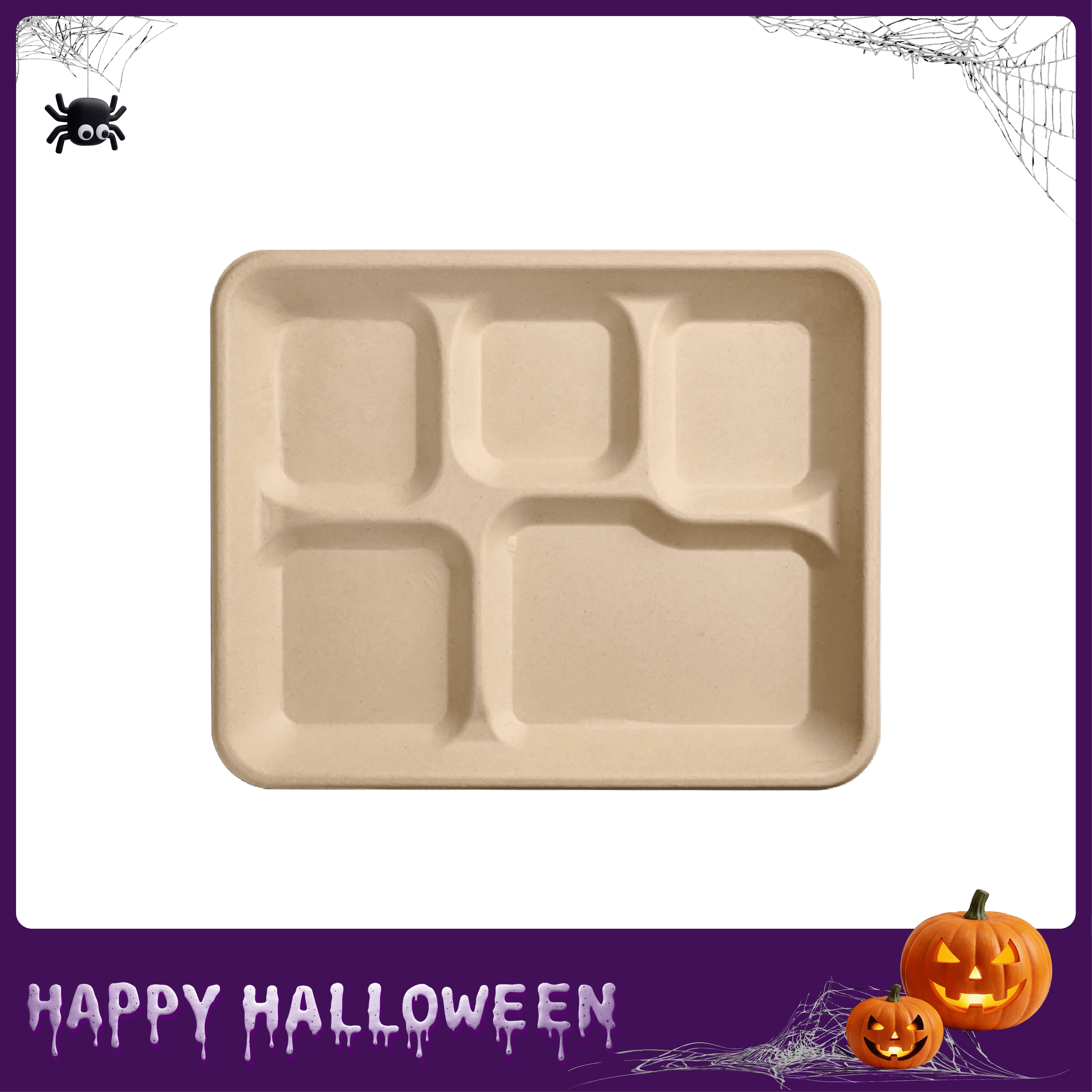 Eco-Friendly Natural Brown 5 Compartment Lunch Trays for School and Parties